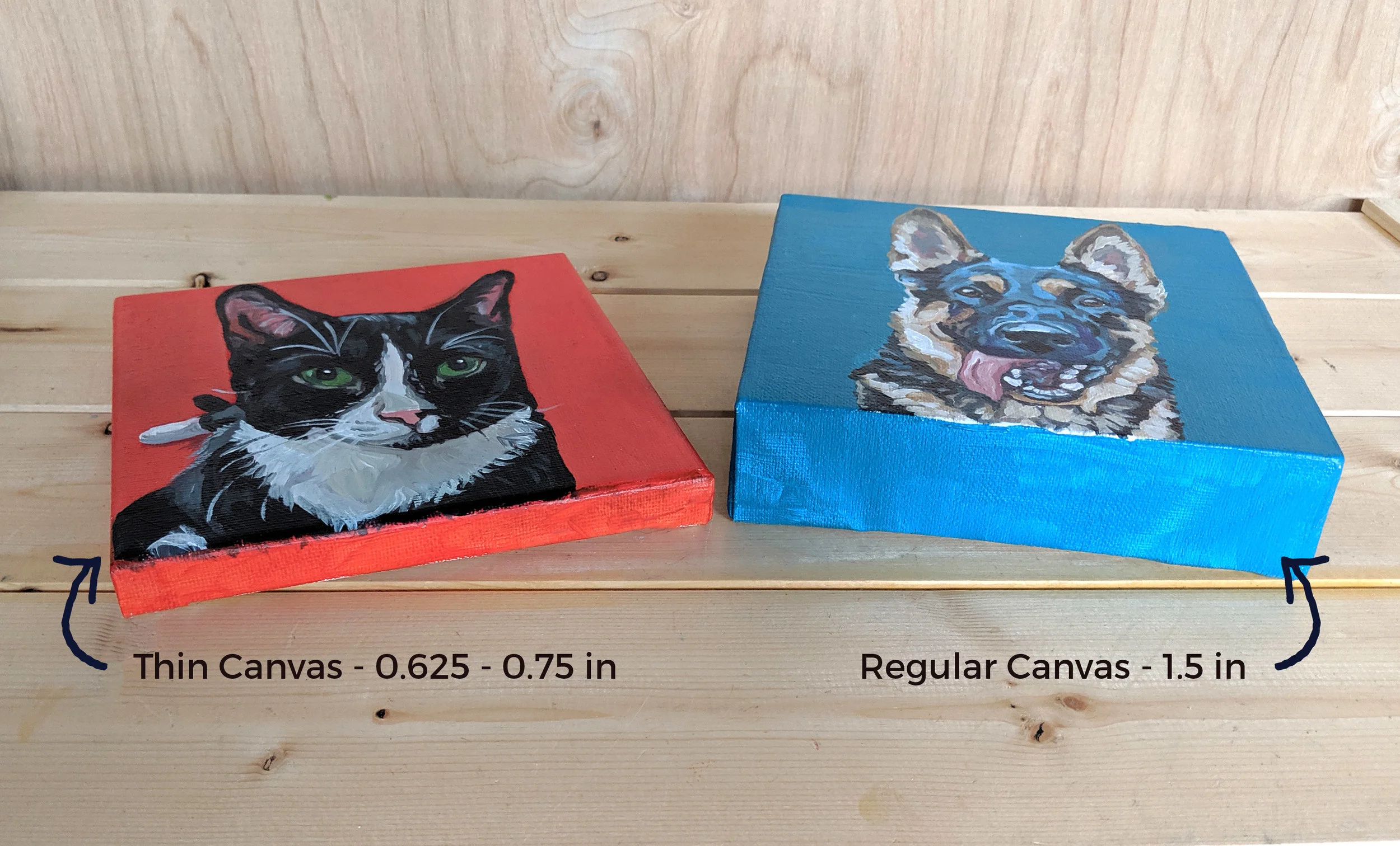 Regular portraits are done on a 1.5 in deep canvas, this option is a special deal for the 6x6 size only on thin 0.625-0.75 in canvas!